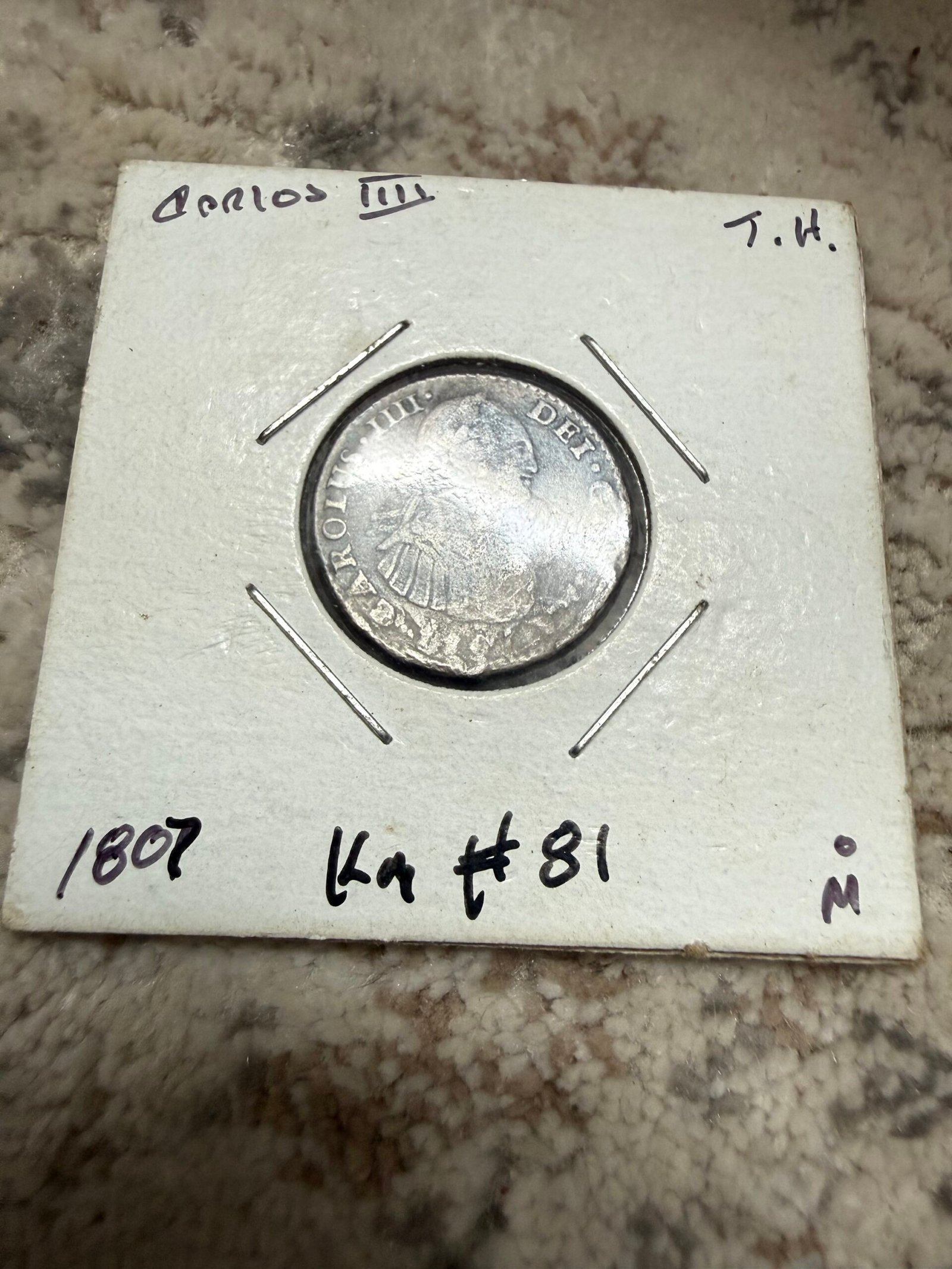 moneda colonial española, real de plata 1807, carolus iiii error, tesoro enterrado campeche, moneda virreinal méxico, plata 0.903, ceca méxico mo, real de carlos iv, moneda histórica, ensayadores th, monedas antiguas, colección numismática, real virreinal, tesoro numismático, moneda de plata mexicana, real colonial, monedas españolas américa, candelaria campeche, hallazgo arqueológico, moneda siglo xviii, real carolus 1807, colección de reales, historia virreinato, moneda de colección, antigüedades de plata, piezas coloniales, monedas de méxico, coleccionismo numismático, moneda error carolus, real antiguo plata