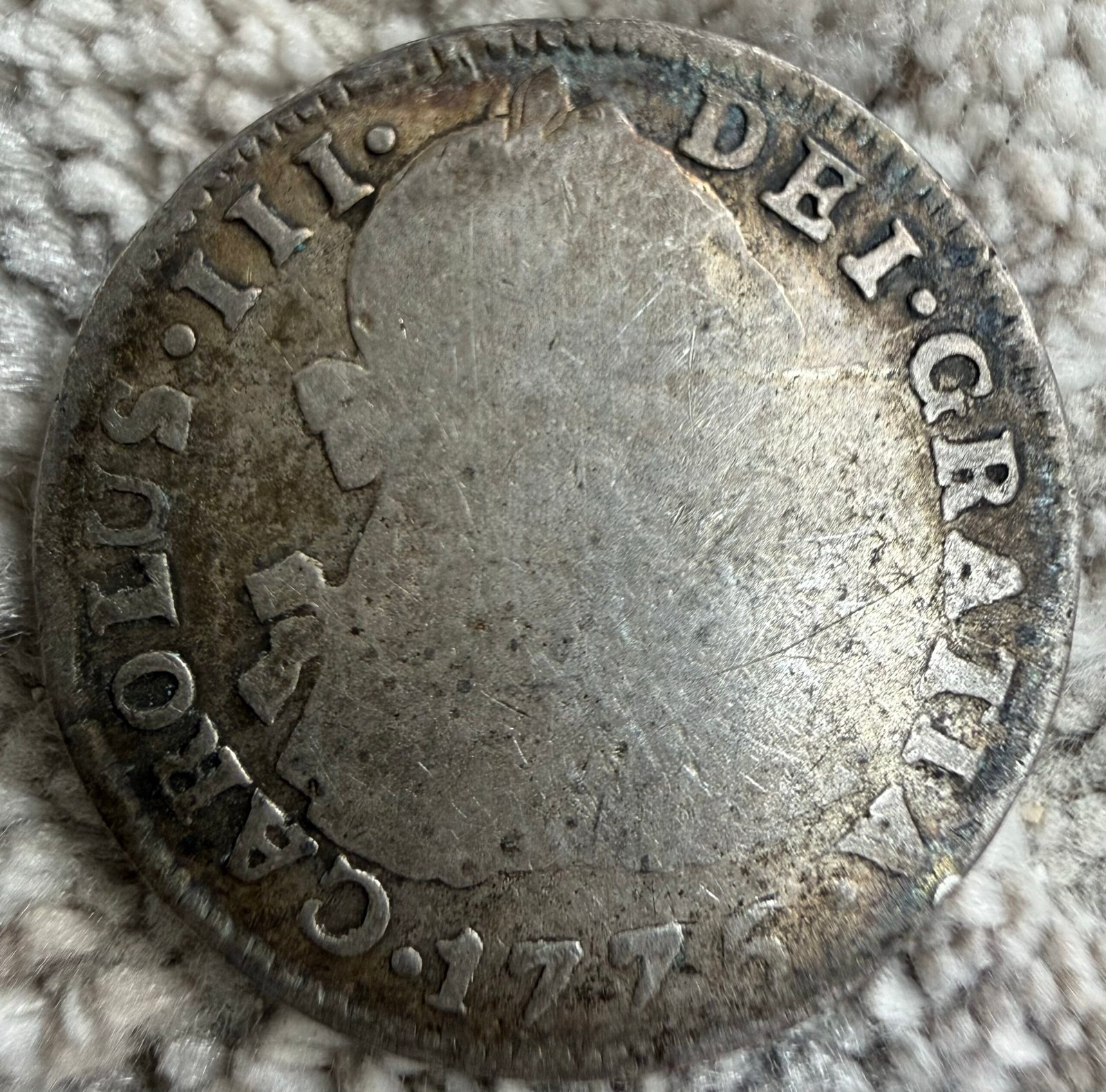 “CAROLUS • III • DEI • GRATIA • 1776” (Carlos III por la gracia de Dios, 1776).