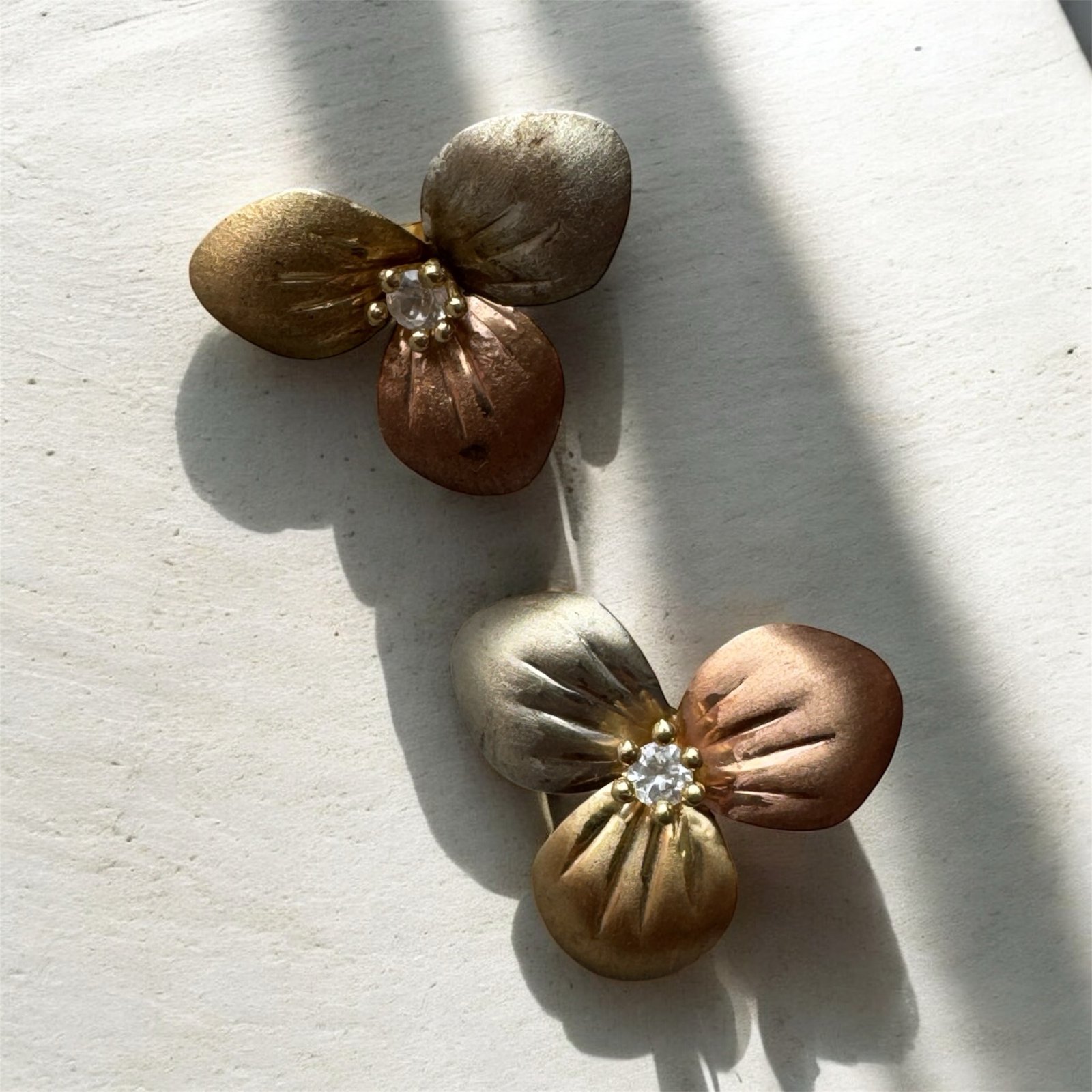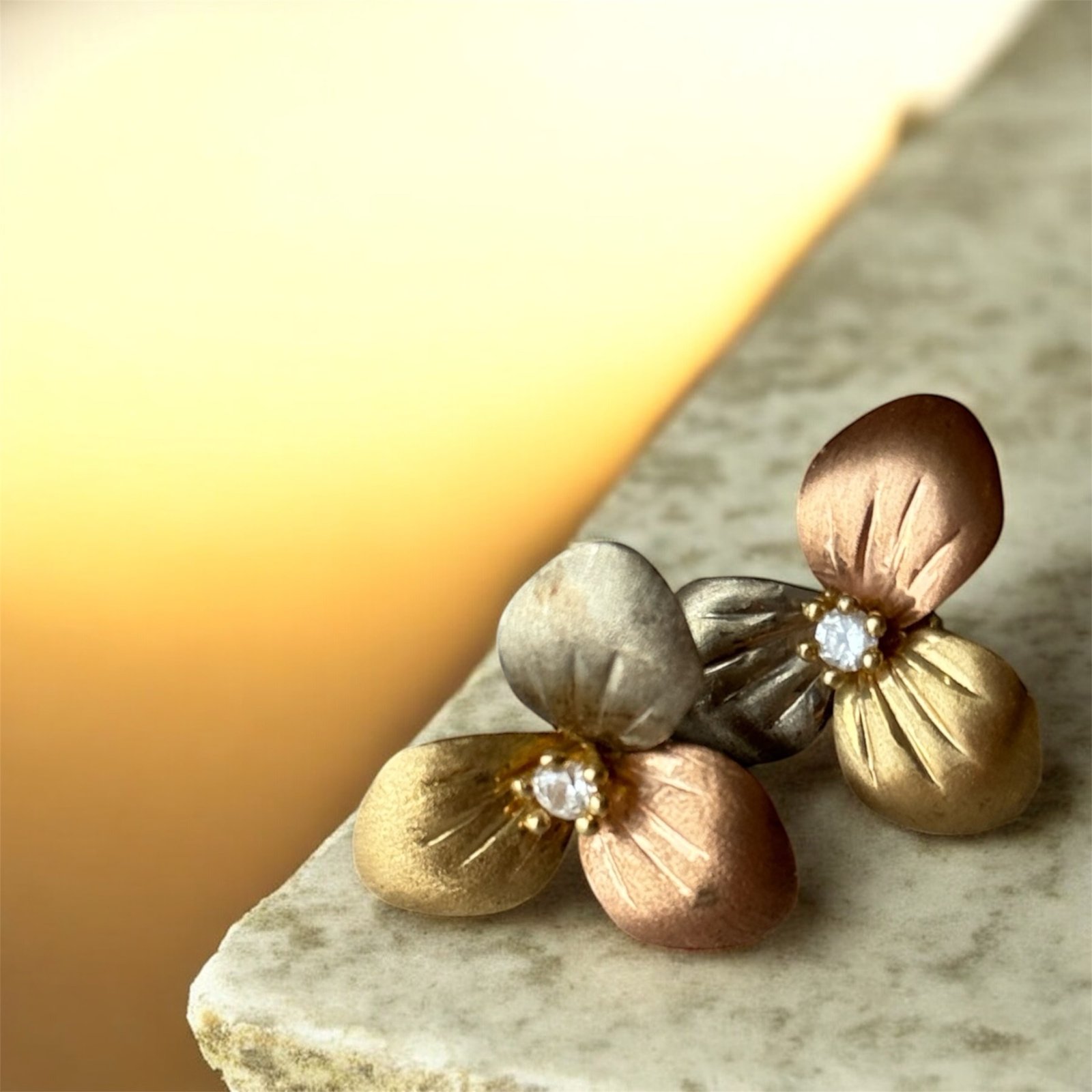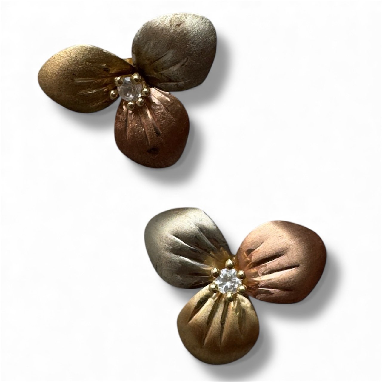 Aretes de Oro 14K Pétalos 3 Oros Flor con ZirconiaDisponibilidad: Disponible
