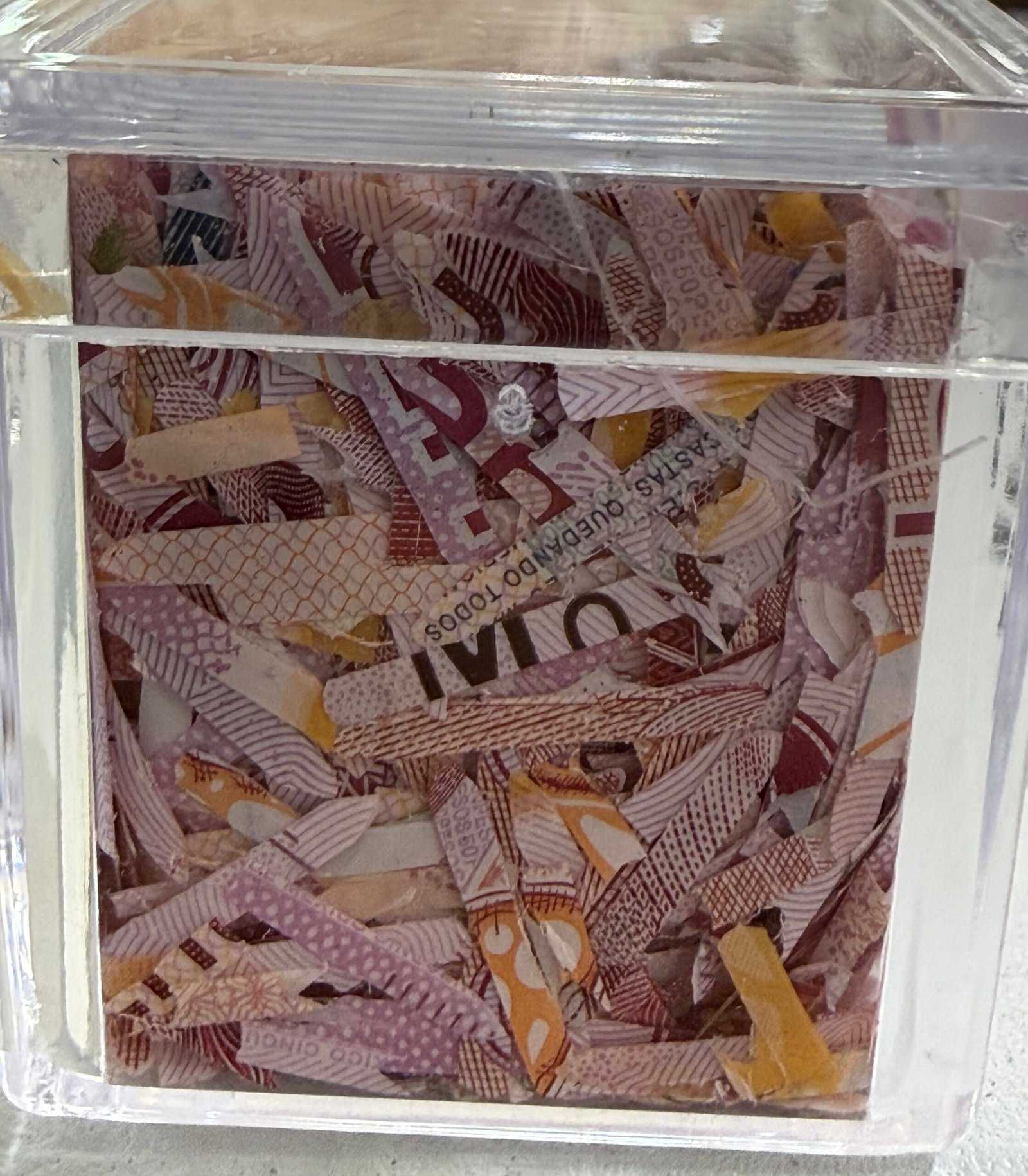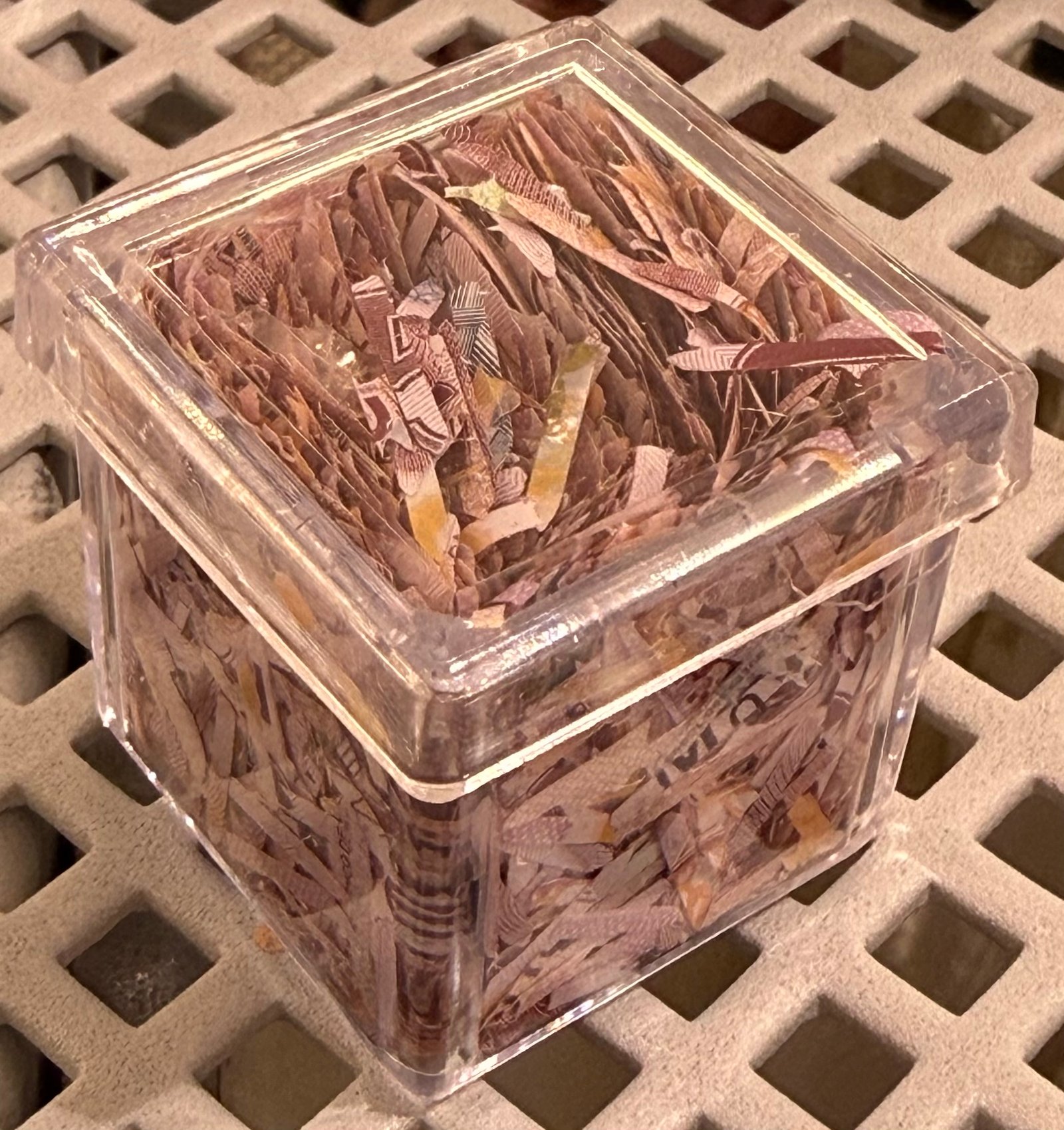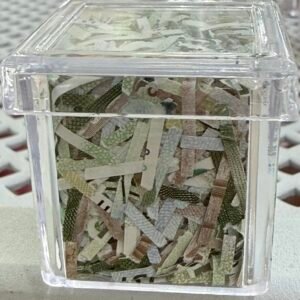 A diferencia de los billetes con errores que ocasionalmente llegan al público por fallas de control, las maculaturas trituradas forman parte del material de descarte generado en la Fábrica de Billetes del Banco de México. El triturado cumple la función de impedir cualquier reutilización como medio de pago, garantizando la seguridad del sistema monetario nacional. Por ello, los cortes, perforaciones o fragmentaciones presentan un patrón uniforme y regular, claramente identificable como resultado de un proceso industrial oficial.