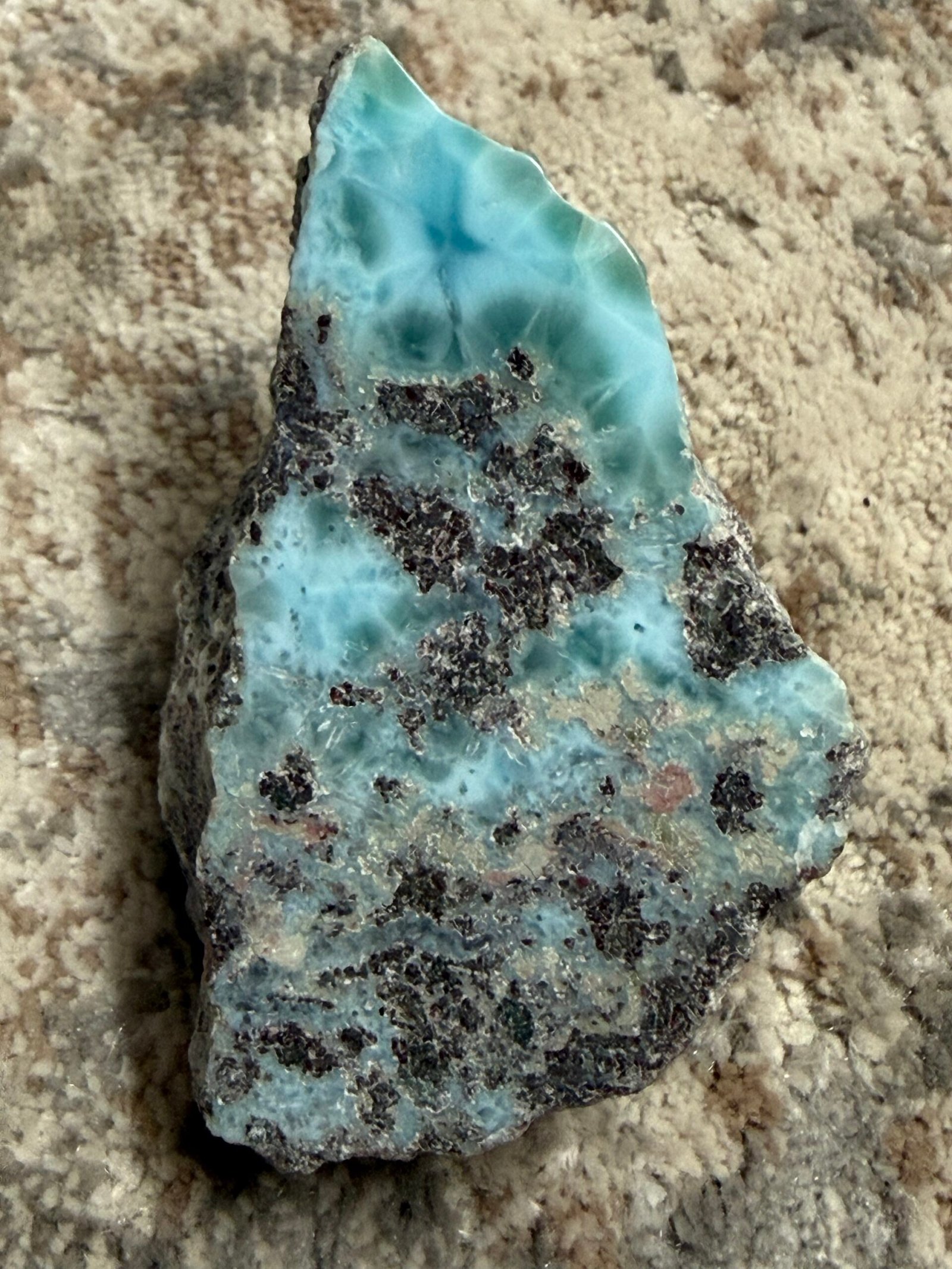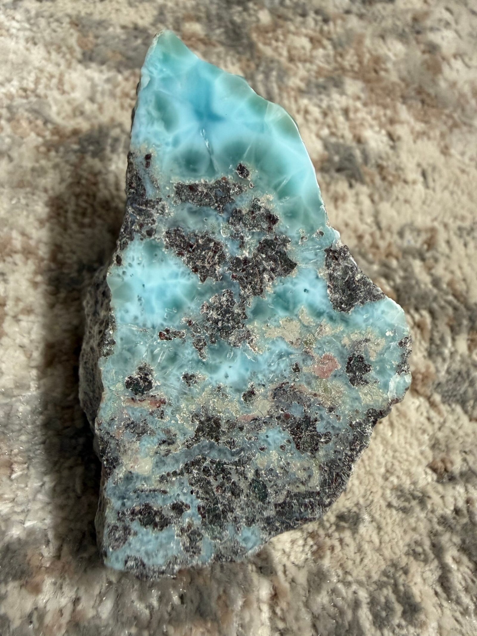 El larimar es una piedra preciosa rara y única, conocida por sus impresionantes tonos azules y patrones cautivadores. A menudo se le llama la “Piedra de la Atlántida” o la “Gema del Caribe” debido a su asociación con el Mar Caribe12.